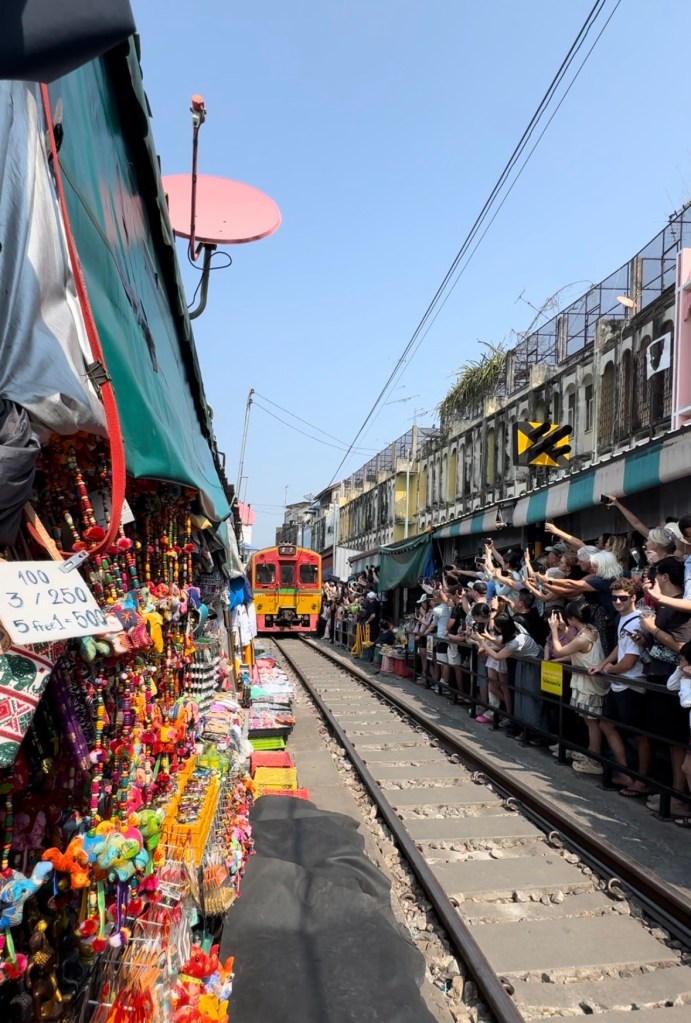 While often deemed a tourist trap, the railway market was a uniquely thrilling experience. Vendors calmly guided us to safe spots as the train approached, leaving just inches between us and the passing cars. The anticipation built as we waited under the blazing sun, waving to the conductor and passengers. Once the train rumbled past, everyone (myself included) fled to the nearest air-conditioned café. I sipped on a chilled lemon tea, grateful for the shade and the surreal experience.