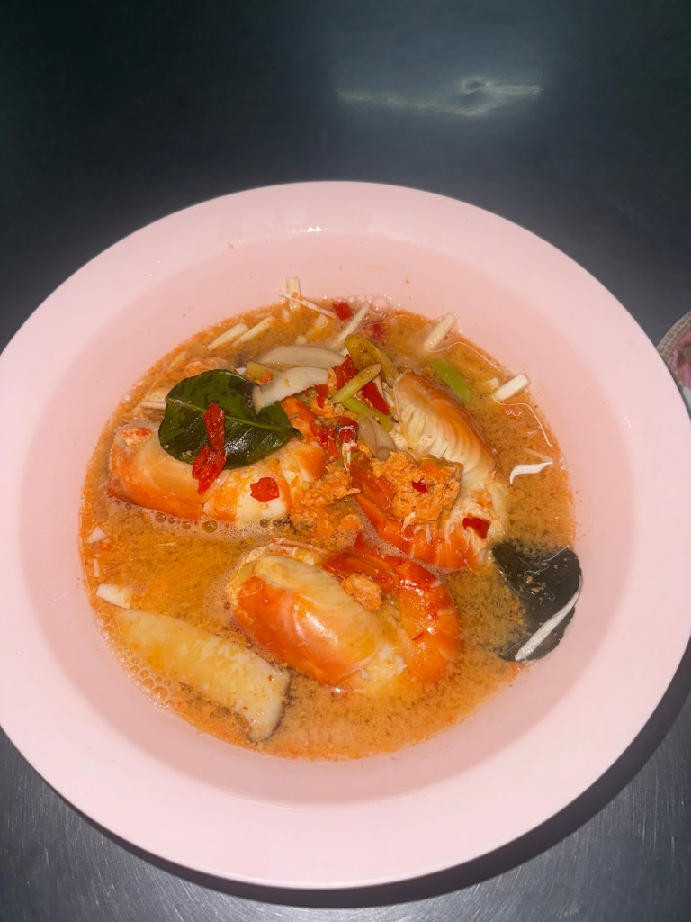 This Tom Yum Goong was unlike any I’d tasted before—the broth’s creaminess came from prawn heads rather than coconut milk, allowing the lemongrass, chili, fish sauce, and lime to shine. Each spoonful coated my throat with a perfectly balanced punch of spice and sourness, a flavor that’s impossible to replicate back home. It was the perfect meal to commemorate my Bangkok stay.